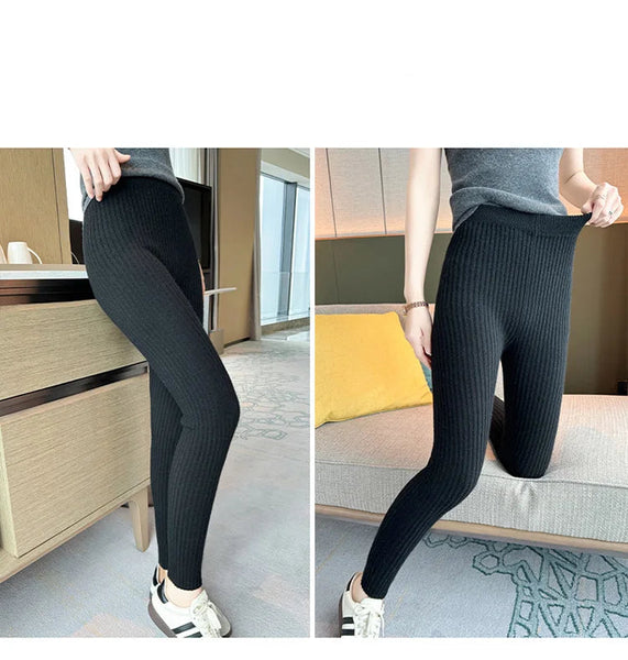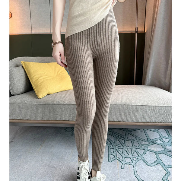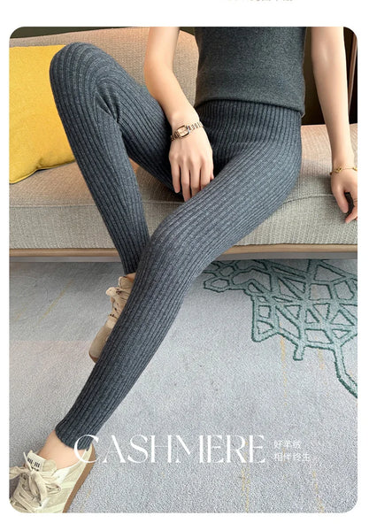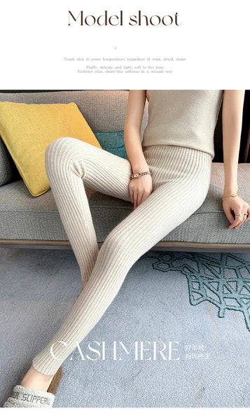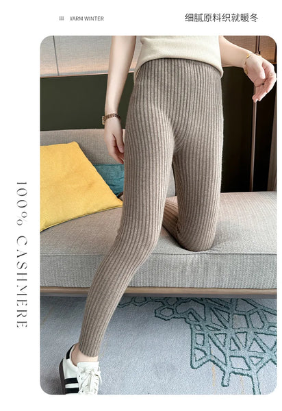 Women's 100% Cashmere Leggings - High Waist Thermal Knitted Pants