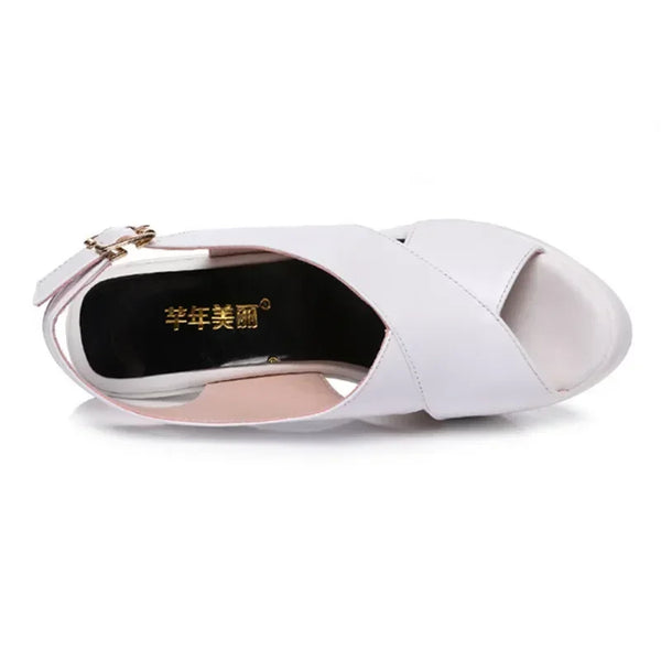 Command attention in these gladiator heeled sandals, designed to pair structured styling with poised height. Cross-tied straps and a secure back buckle wrap the foot for a confident, tailored feel.
