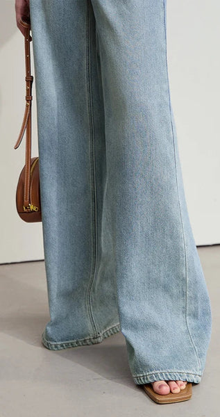 Women’s Wide-Leg Light Wash Jeans – Low-Waist Summer Style