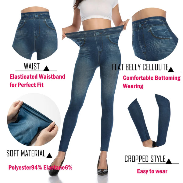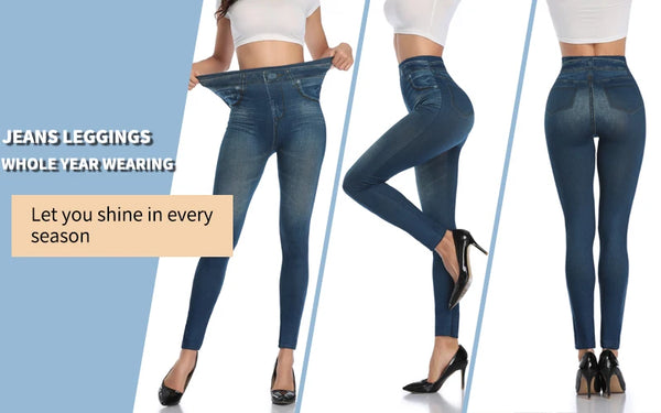 Leggings3: Women Slim Fashion Leggings Faux Denim Jeans