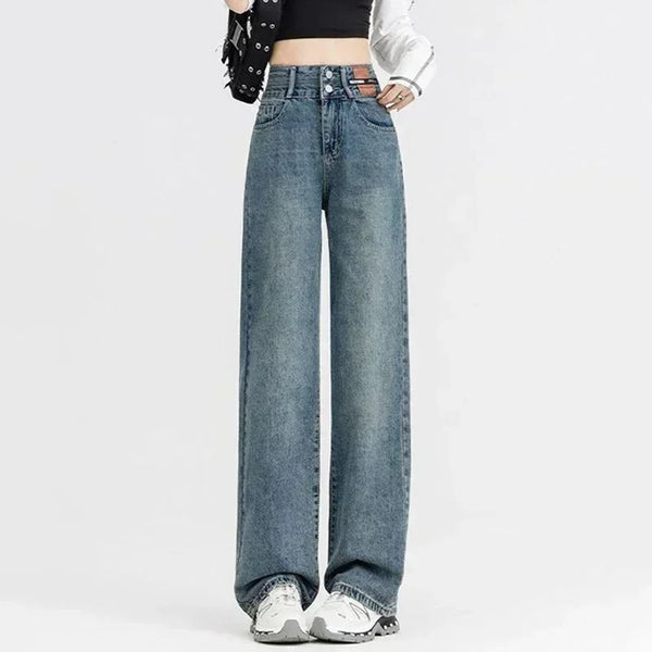 New Woman Korean Double Buckle Design Jeans Female Winter Snow Warm Thermal Plush Pants Girls Popular High Waist Denim Trousers