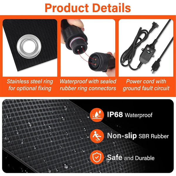 Keep entrances clear and walkways safer in winter with this graphene heated snow melting mat. Designed to melt snow and ice quickly, it lays flat on steps, sidewalks, or driveways and delivers steady heat with a simple plug-in setup.