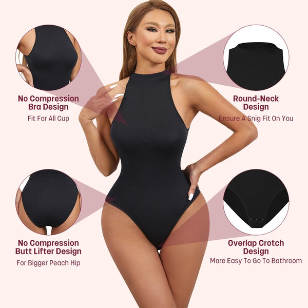 Enjoy light, breathable shaping with this round neck body shaper bodysuit, designed to gently refine your waist and enhance your natural curves.