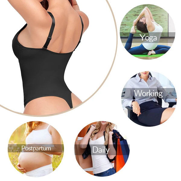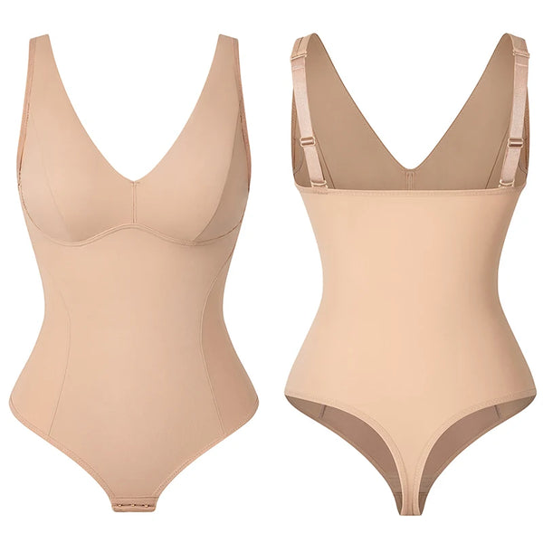 Sculpt a smooth, elegant silhouette with this deep V shapewear bodysuit, designed to disappear under your favorite looks while enhancing every curve with refined support.