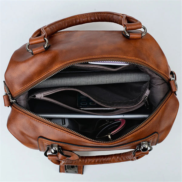 - Dual carry options include a structured top handle and adjustable crossbody strap for hands-free wear